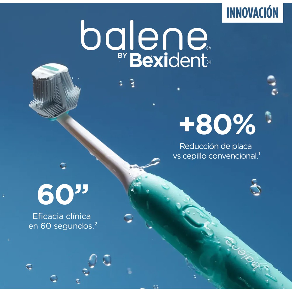El Cepillo de dientes Balene posee un innovador cabezal con la que se cepilla toda la dentadura a la vez. El diseño de 6 caras abrazo los dientes asegurando máxima cobertura.