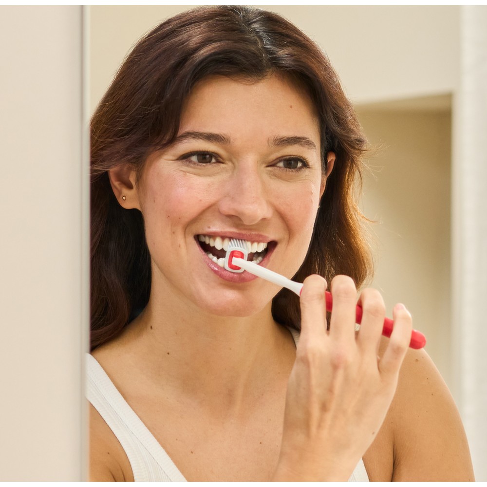 Sus cerdas anguladas a 45º limpian eficazmente la línea de las encías garantizando una limpieza profunda y efectiva.