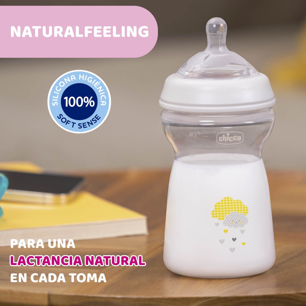 Los biberones Chicco NaturalFeeling tienen una tetina angular única que promueve la posición correcta para la alimentación del bebé, ayudando a su digestión y evitando el cólico. El diseño de la tetina facilita el agarre y la succión del bebé, haciendo la transición del pecho al biberón mucho más fácil y natural.