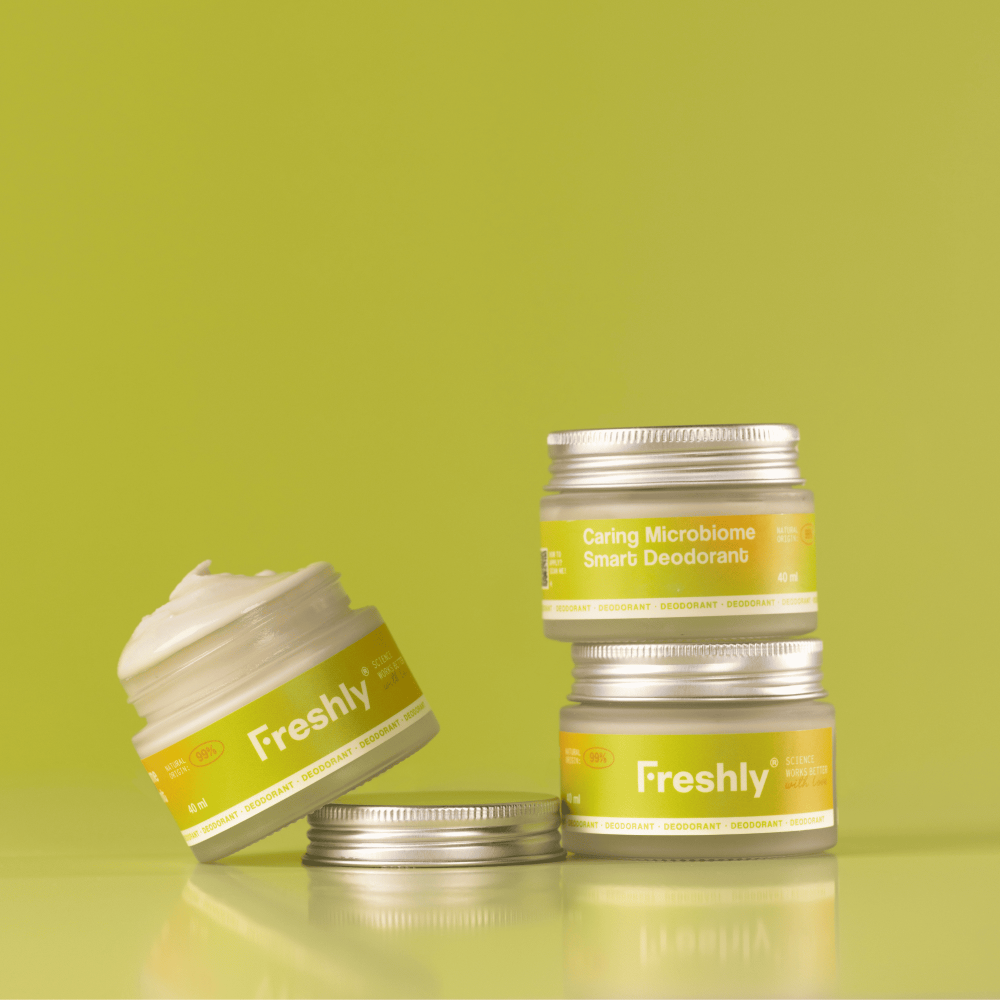 Freshly Cosmetics Caring Microbiome Smart Deodorant con Tierra de Diatomeas es mucho más que un desodorante; es una solución 99% natural que respeta la biología de tu cuerpo.