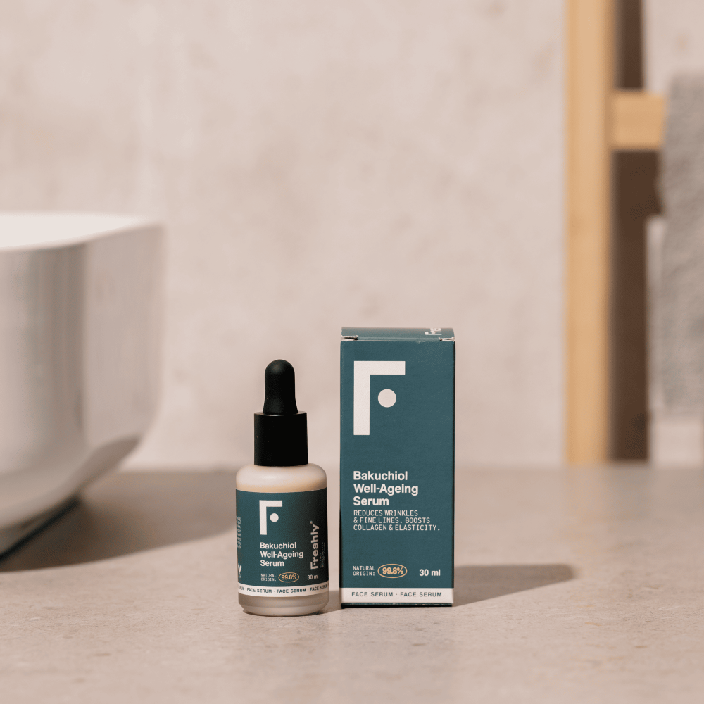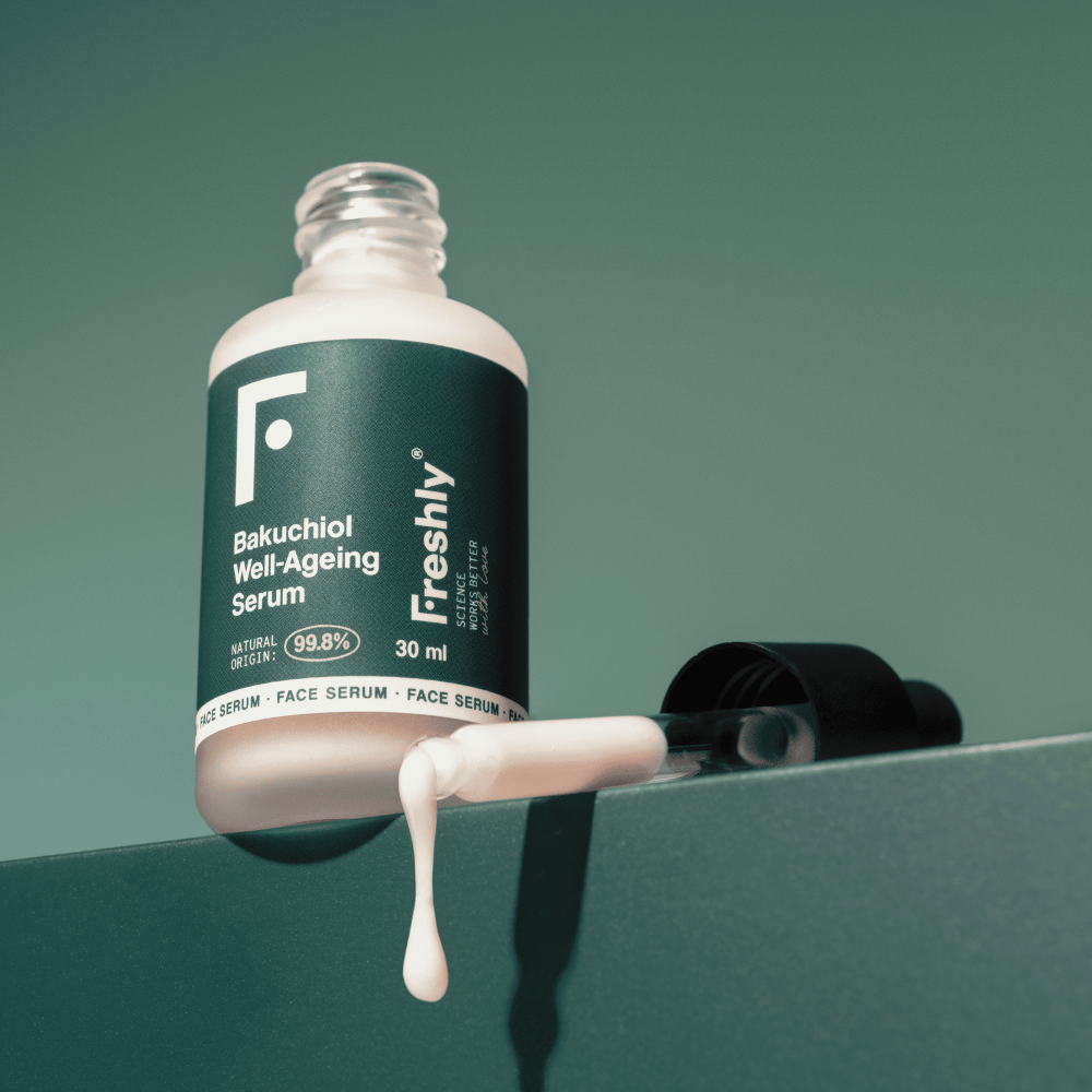 Freshly Cosmetics Bakuchiol Well-Ageing Serum con Ácido Hialurónico y Epigenética representa la nueva era del cuidado pro-aging 100% natural.