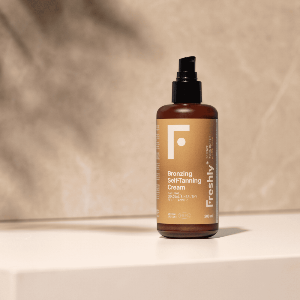 Freshly Cosmetics Bronzing Radiance Self-Tanning Cream con Eritrulosa e Inositol revoluciona el concepto de autobronceado con una fórmula facial y corporal que ofrece un efecto dual único.