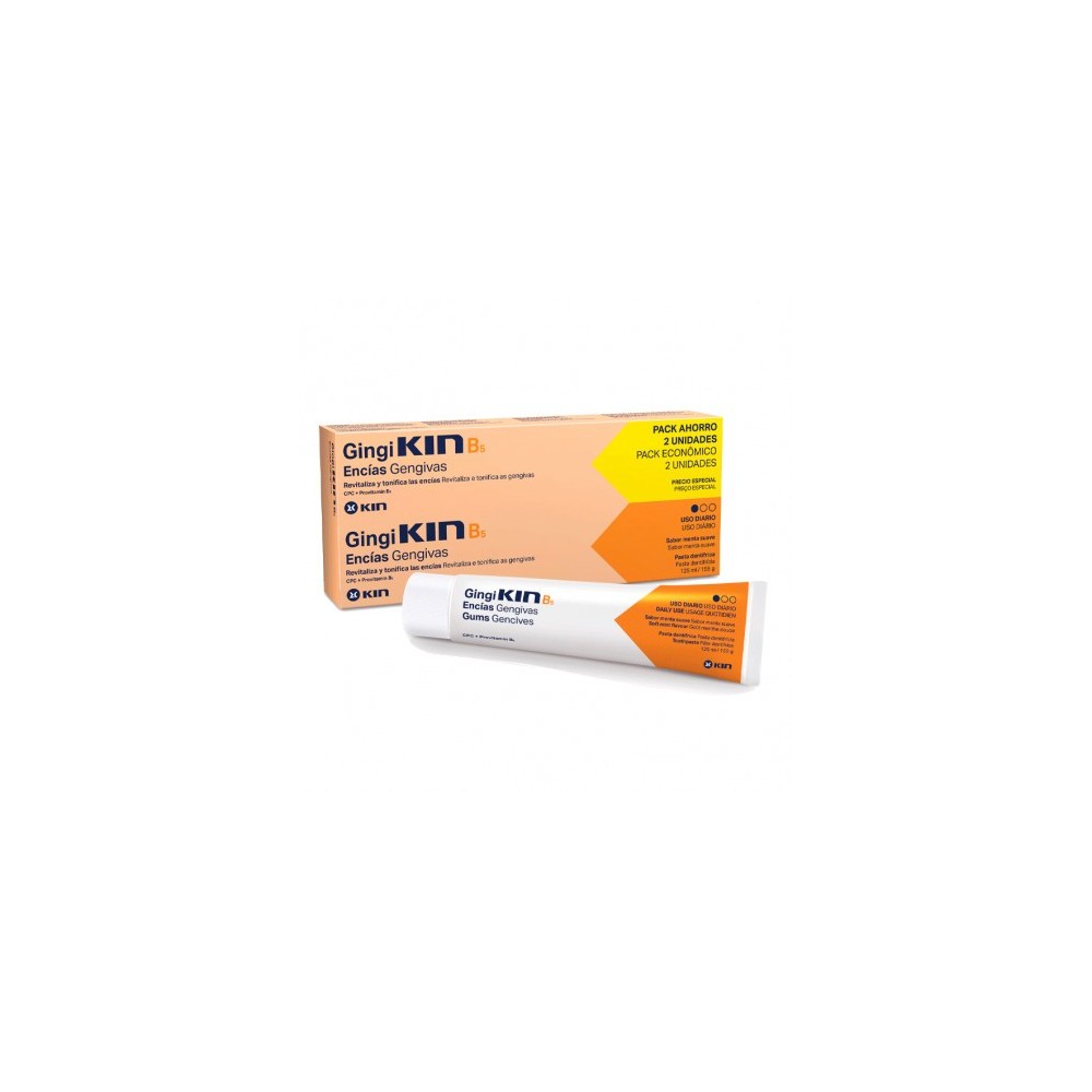 Gingi Kin Pasta dental Su fórmula con Triclosán, Provitamina B5 y sal de Zinc actúa controlando los microorganismos del biofilm dental, a la vez que protege y revitaliza la encía.