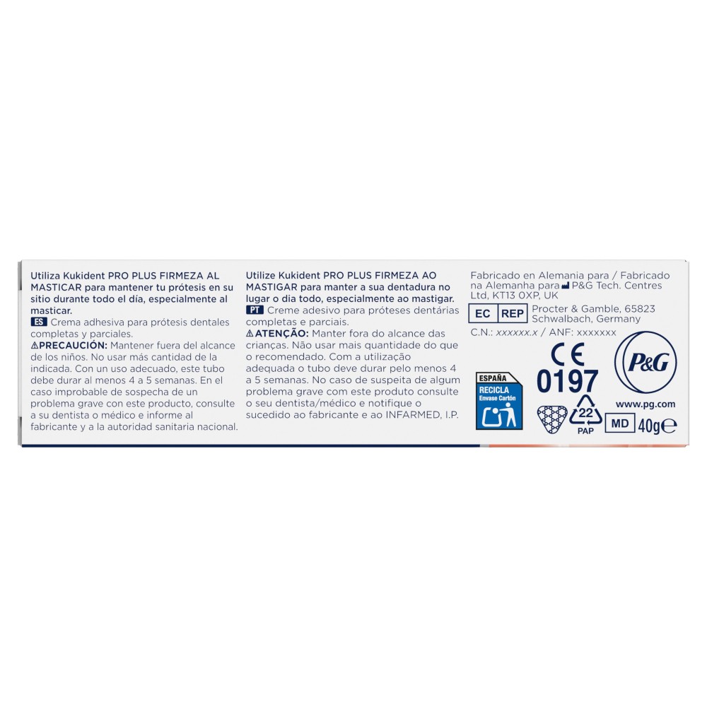 Kukident Adhesivo para prótesis dentales Pro Plus Firmeza al Masticar 40g