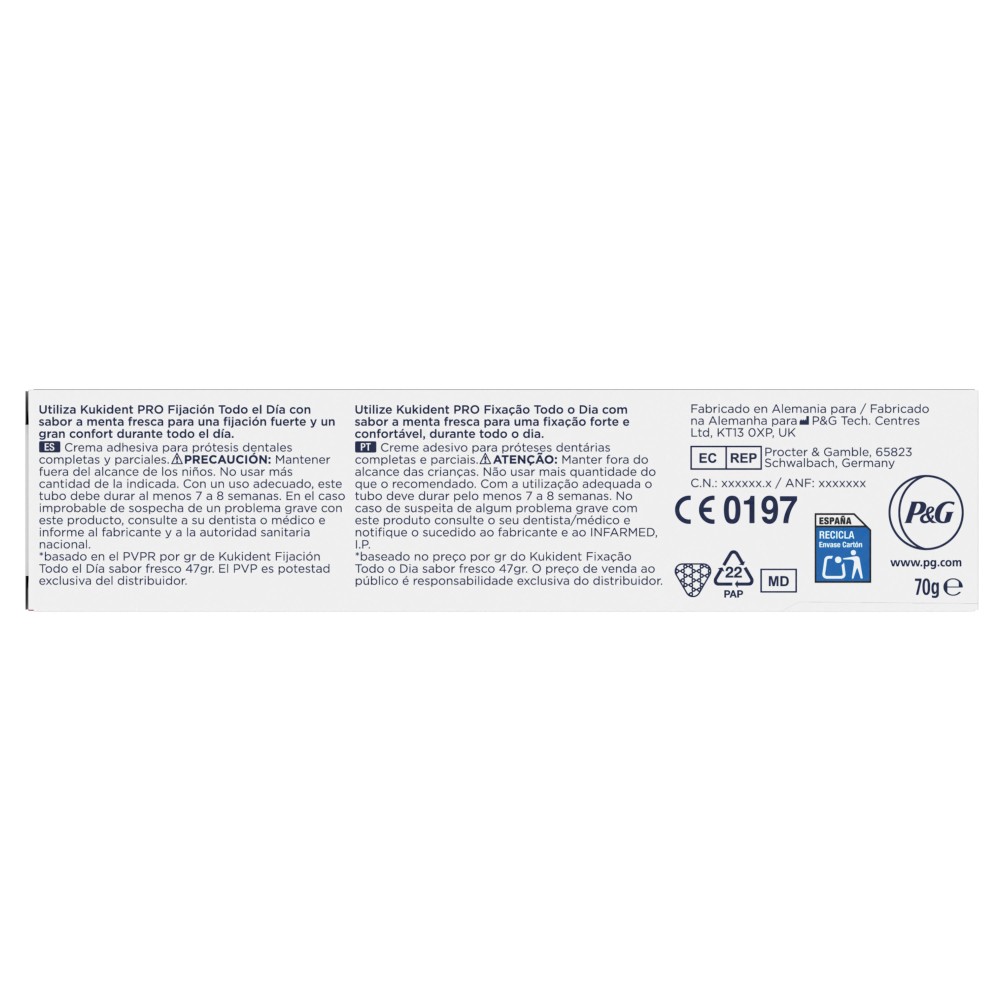Kukident Adhesivo para prótesis dentales Fijación Todo El Día Fresco 70g