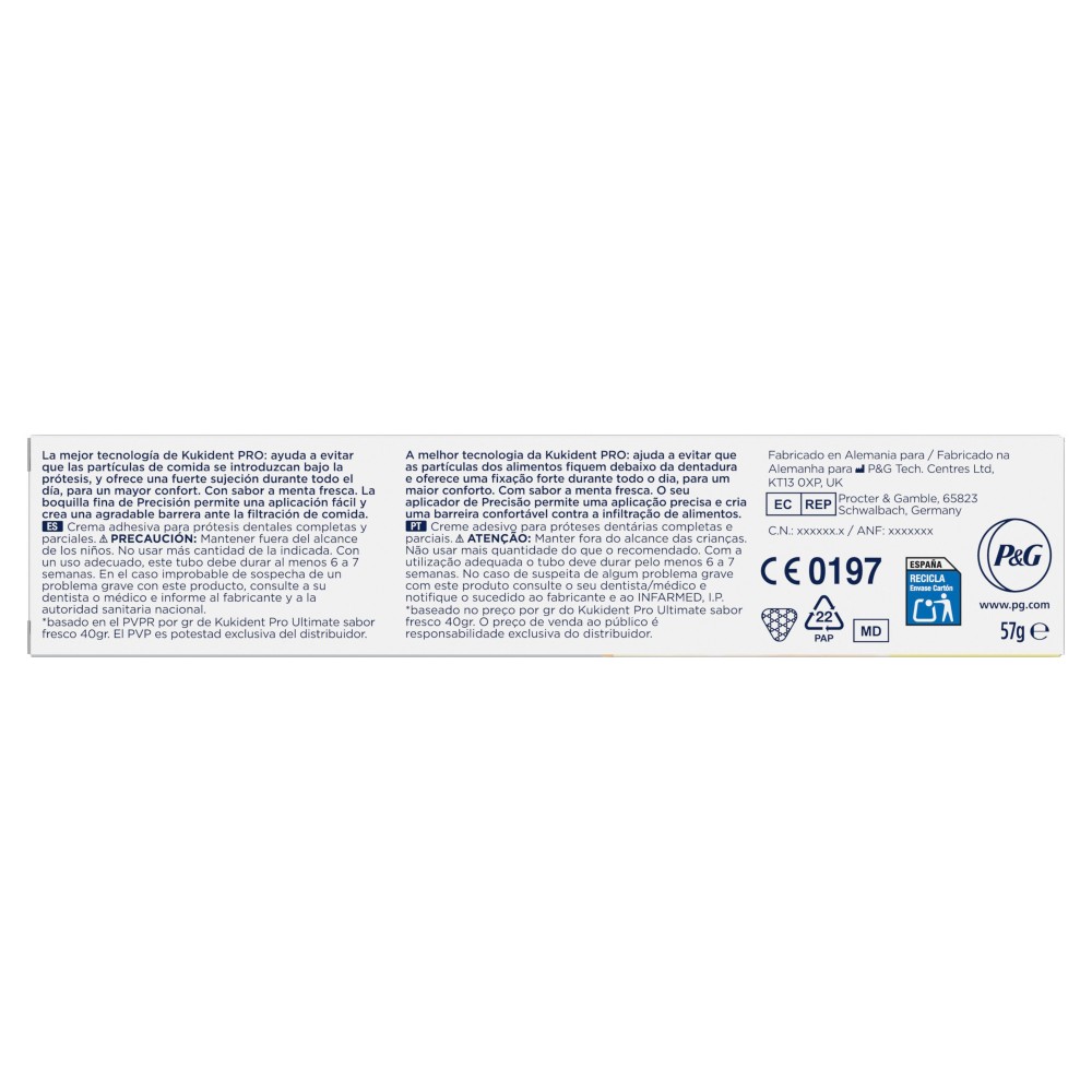 Kukident Adhesivo para prótesis dentales Pro Ultimate Sabor Fresco 57g