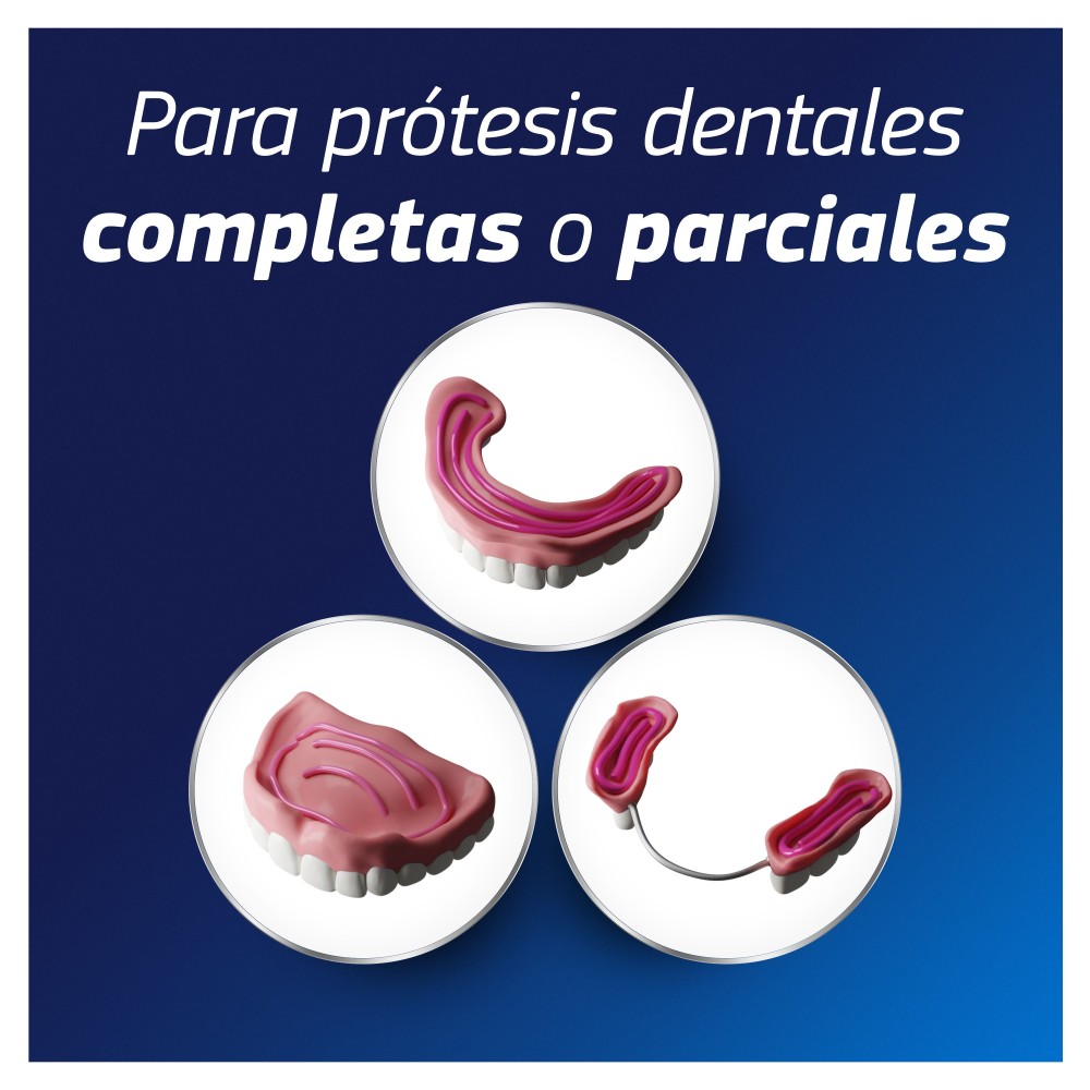 Ayuda a evitar que las partículas de comida se introduzcan bajo la prótesis dental, y ofrece una fuerte sujeción durante todo el día, para una mayor comodidad.