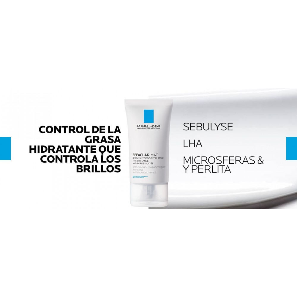 Effaclar Mat está formulado con sebulyse, que ayuda a matificar la piel y a reducir el tamaño de los poros. Se ha demostrado clínicamente que la eficacia reguladora del sebo del sebulyse es superior a la del zinc, el ingrediente activo estándar usado para tratar los problemas de la piel grasa.