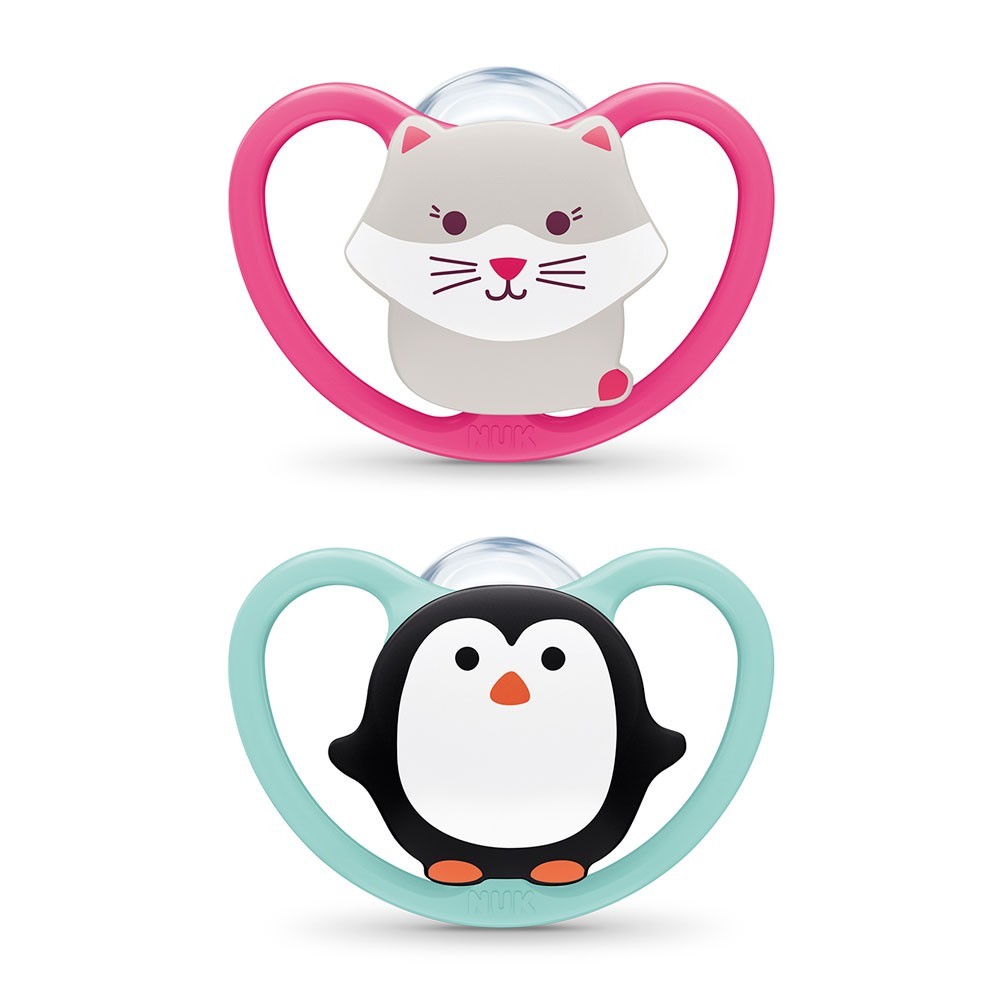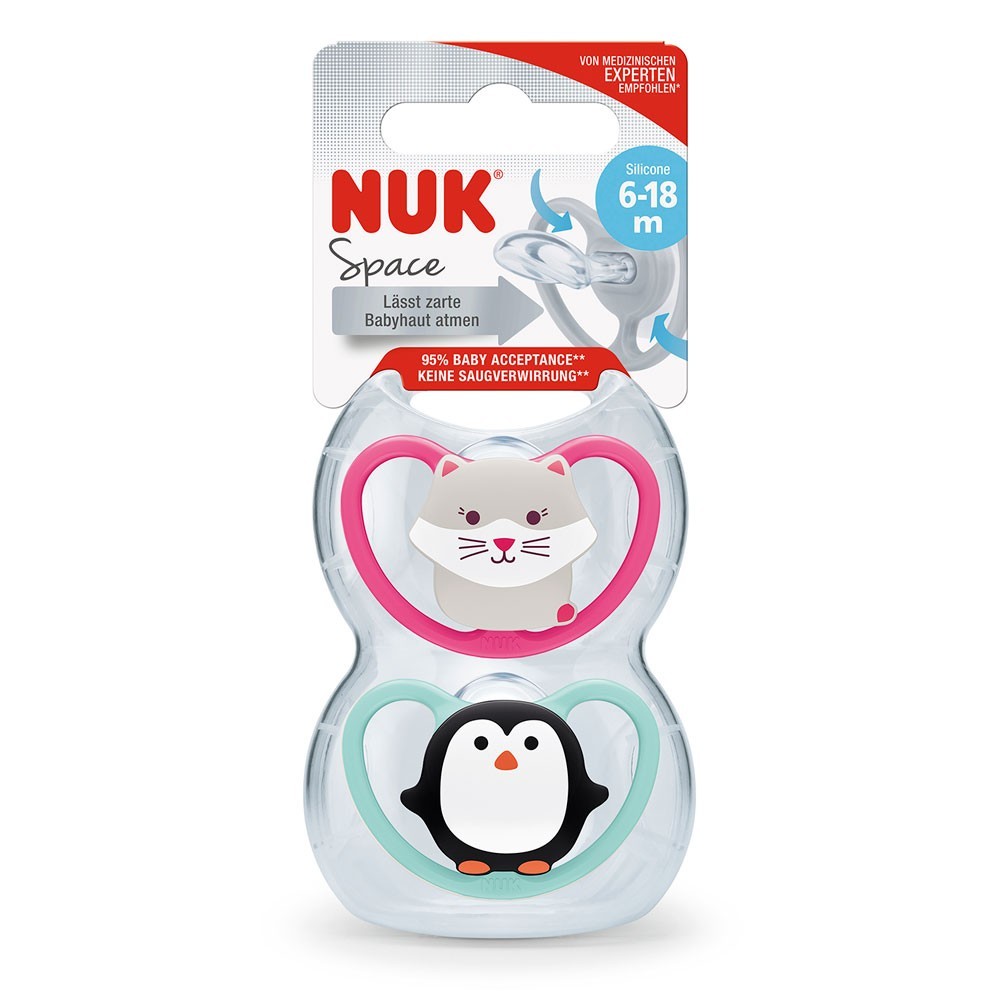 Nuk Chupete Space 6-18 Silicona 2 unidades. Desarrollado para proteger la sensible piel del bebé.