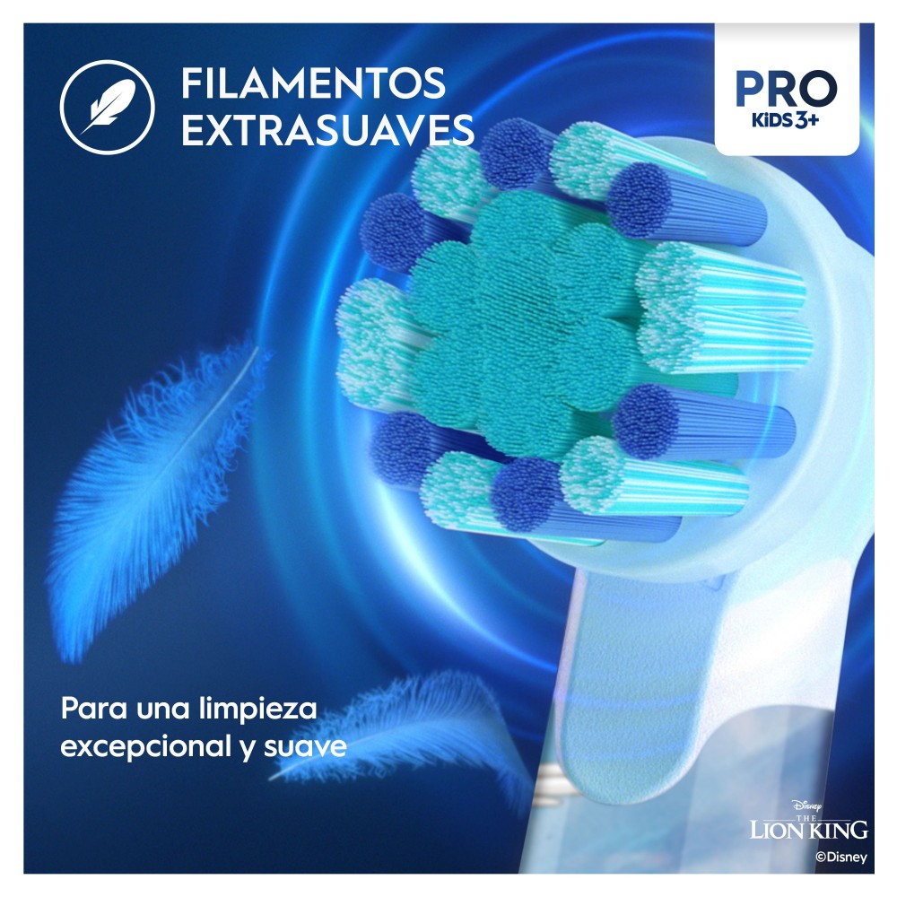 Con un exclusivo cabezal redondo especial para las bocas de los niños que incluye filamentos extrasuaves respetuosos con las encías de los más pequeños.