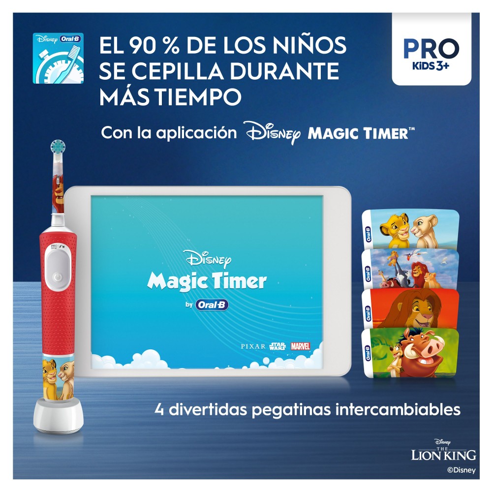 Limpieza superior: Elimina más placa que un cepillo de dientes manual normal: Oral-b Pro Kids es el cepillo de dientes esencial para conseguir una limpieza más suave, apta para niños mayores de 3 años, pero igual de eficaz que con otros cepillos eléctricos Oral-B para cuidar los dientes de los más pequeños.