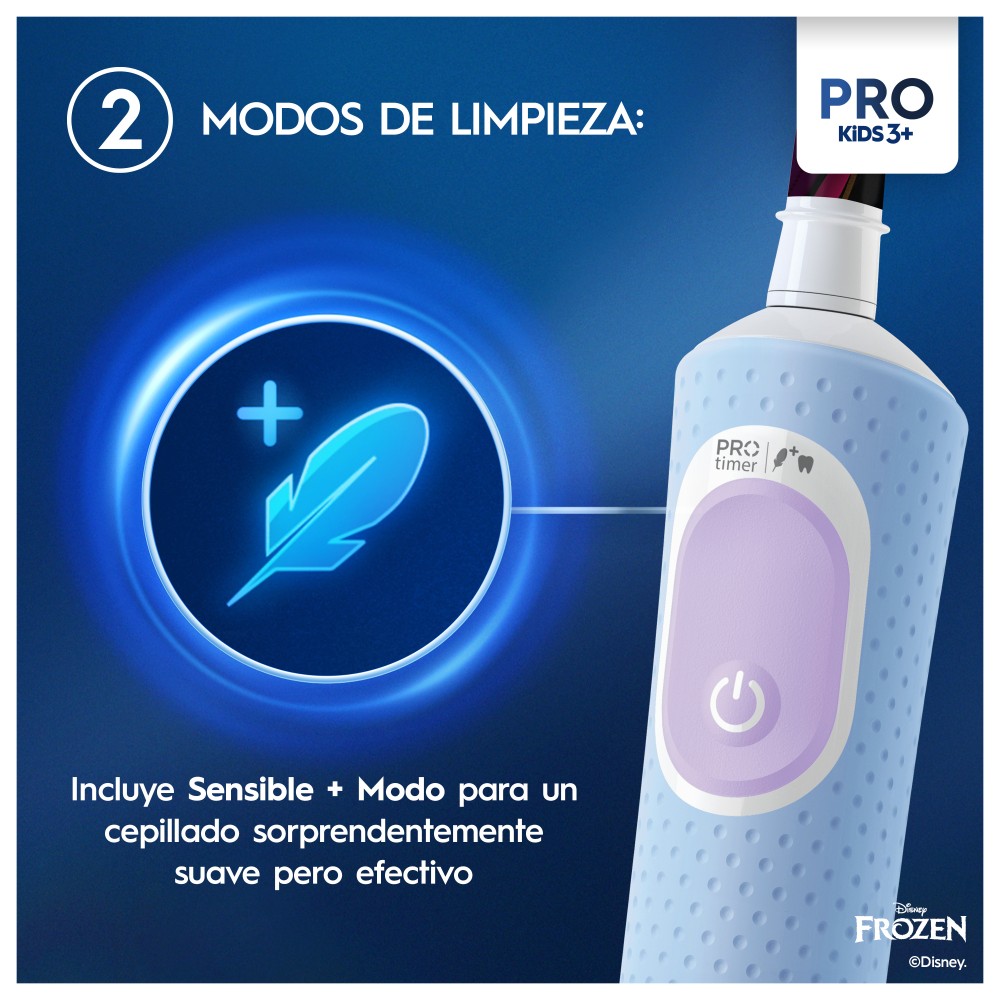 Tiene 2 modos de cepillado: Limpieza diaria y el modo exclusivo Sensible Plus. Este es un modo sensible único para niños.