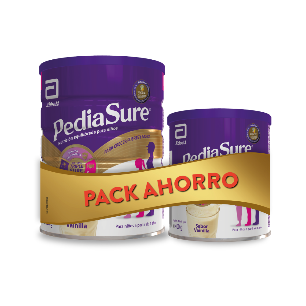 El Pack Ahorro Pediasure Vainilla 850 g + 400 g es un complemento nutricional diseñado para niños, mayores de 1 año, que necesitan un apoyo extra en su dieta diaria.