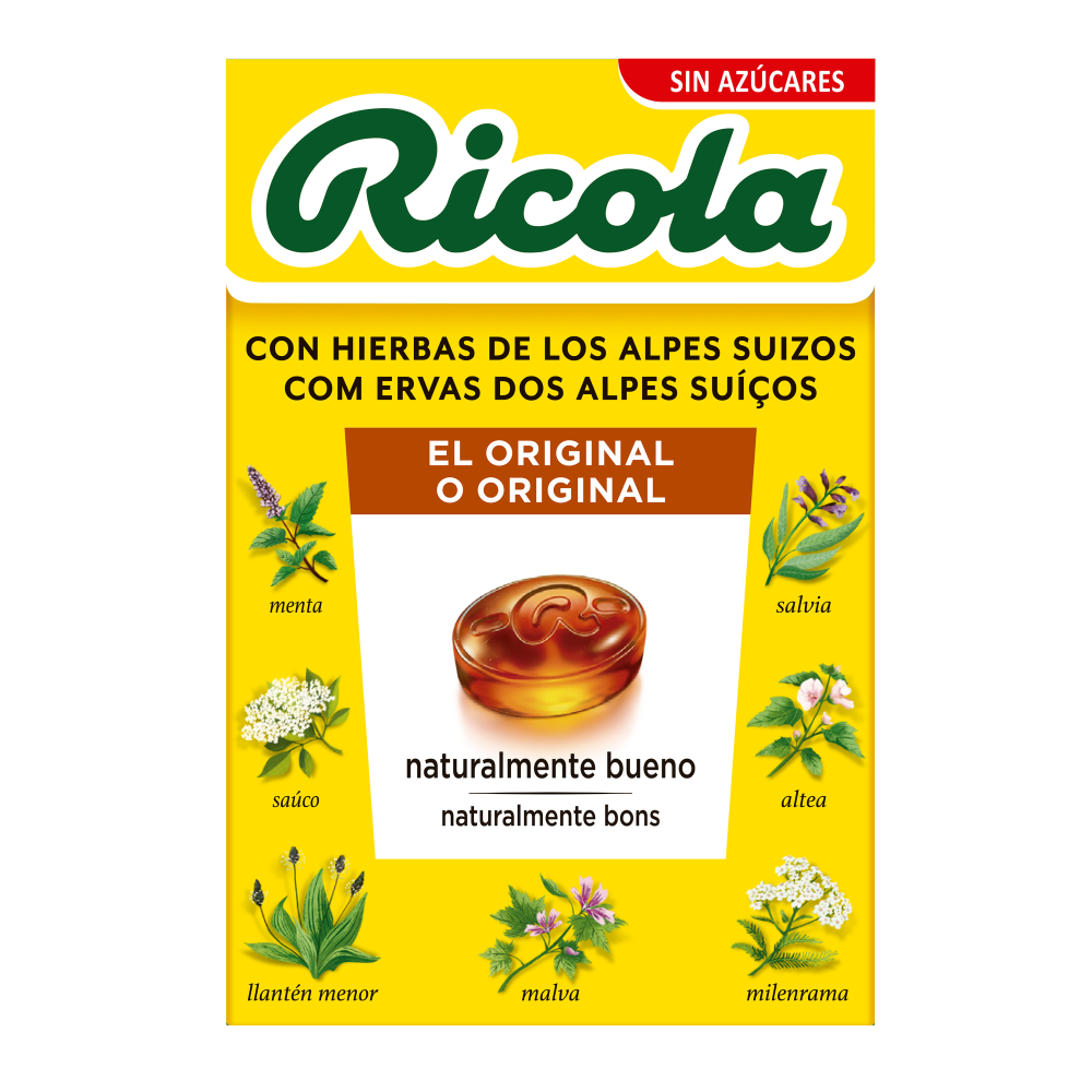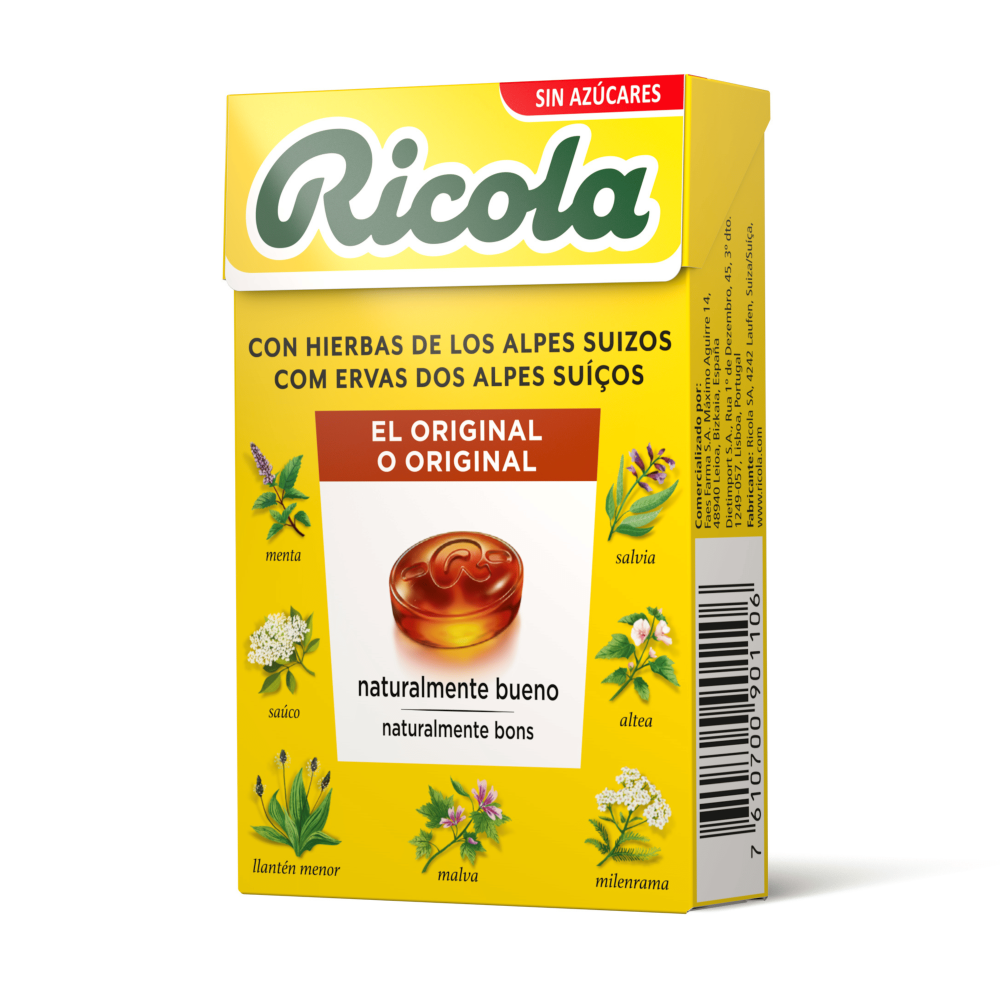Los caramelos de hierbas suizas Ricola contienen el poder de las 13 hierbas. Los clásicos de la gama Ricola se caracterizan por su forma cúbica y su delicioso sabor a hierbas. Desde hace 75 años, Ricola mezcla las 13 hierbas utilizadas para elaborar esta especialidad suiza siguiendo la misma receta: la mezcla de pimpinela, flores de saúco, verónica, menta, salvia, malvavisco, tomillo, pie de león, marrubio, llantén, flores de primavera, milenrama y malva es muy apreciada por los consumidores de todo el mundo para aliviar los resfriados, la tos y la afonía.