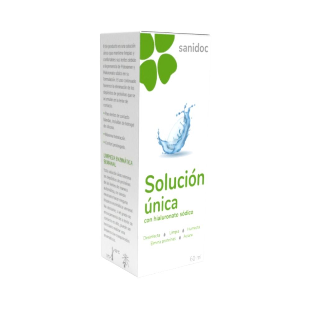 Sanidoc Solución Única proporciona una limpieza enzimática semanal eliminando depósitos de proteínas. Mantiene limpias y confortables las lentes de contacto