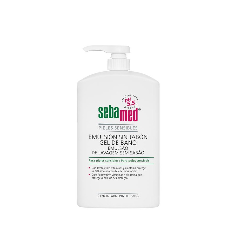Gel de baño sin jabón para la higiene y protección de la piel sensible.