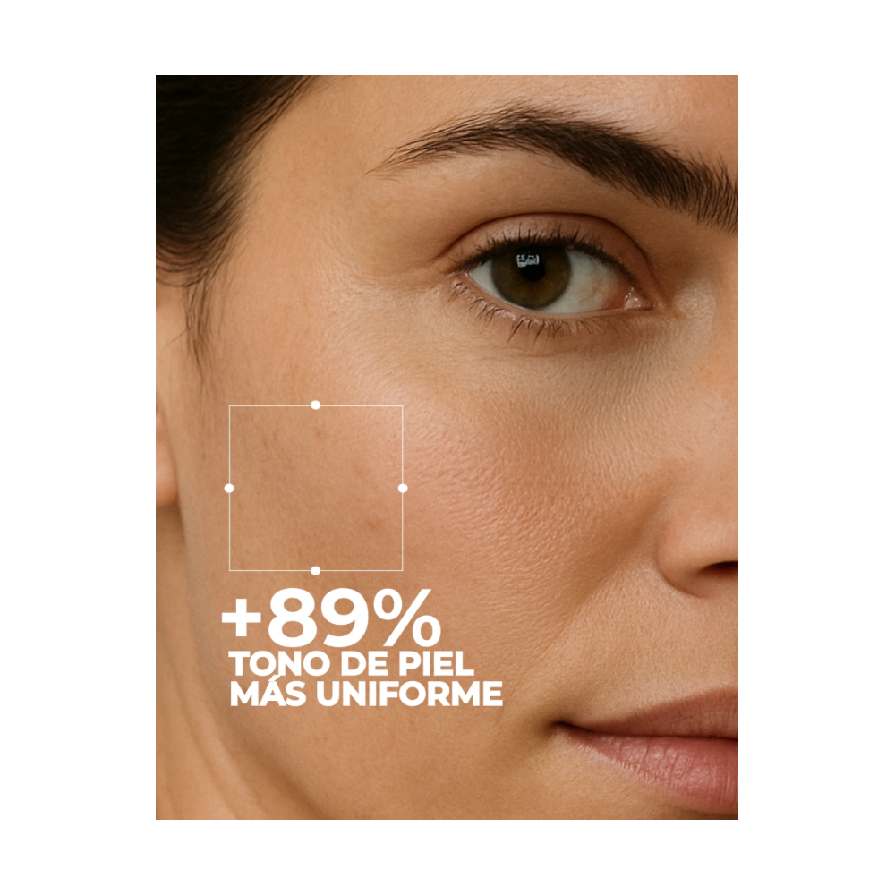 Diseñado para combatir melasma, hiperpigmentación postinflamatoria, manchas solares y tono irregular, actúa sobre el origen de la mancha mientras mejora la textura, luminosidad y calidad global de la piel.
