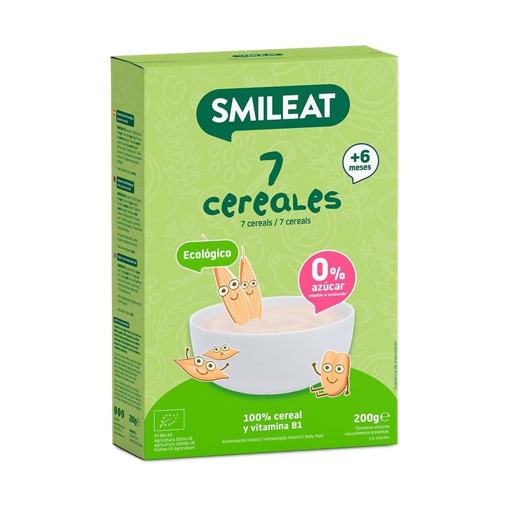 Smileat Papilla de 7 Cereales Ecológicos. Esta papilla de siete cereales representa la base ideal para una alimentación complementaria equilibrada y nutritiva en bebés a partir de los seis meses.