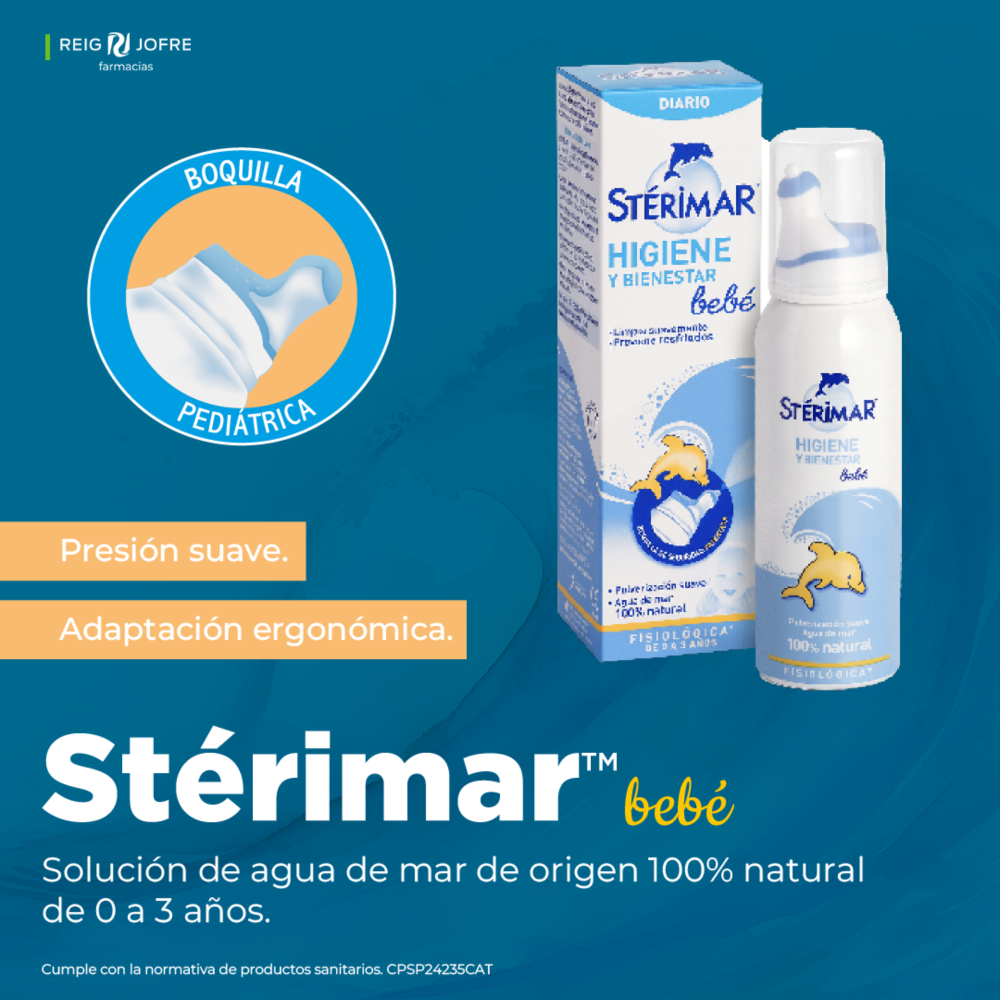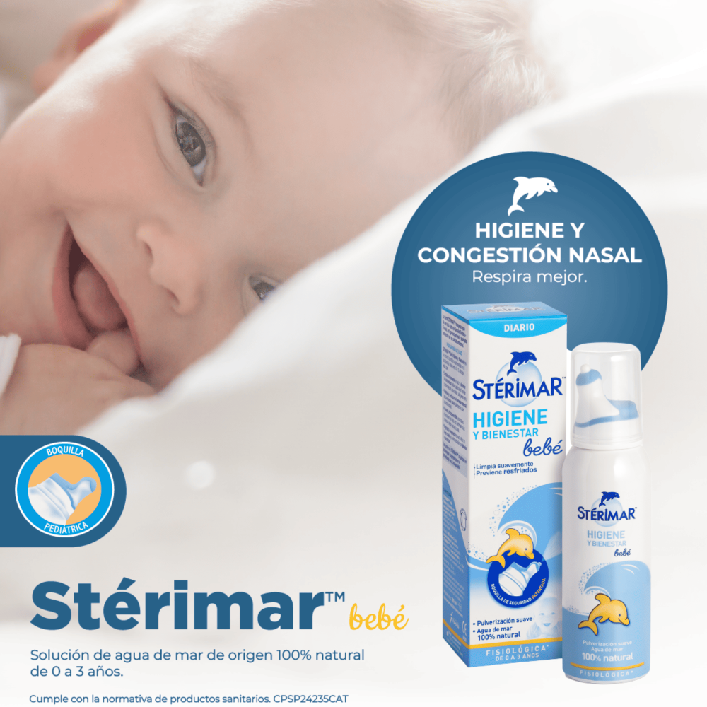 Stérimar Higiene y Bienestar Bebé es una solución de agua de mar de origen 100% natural.