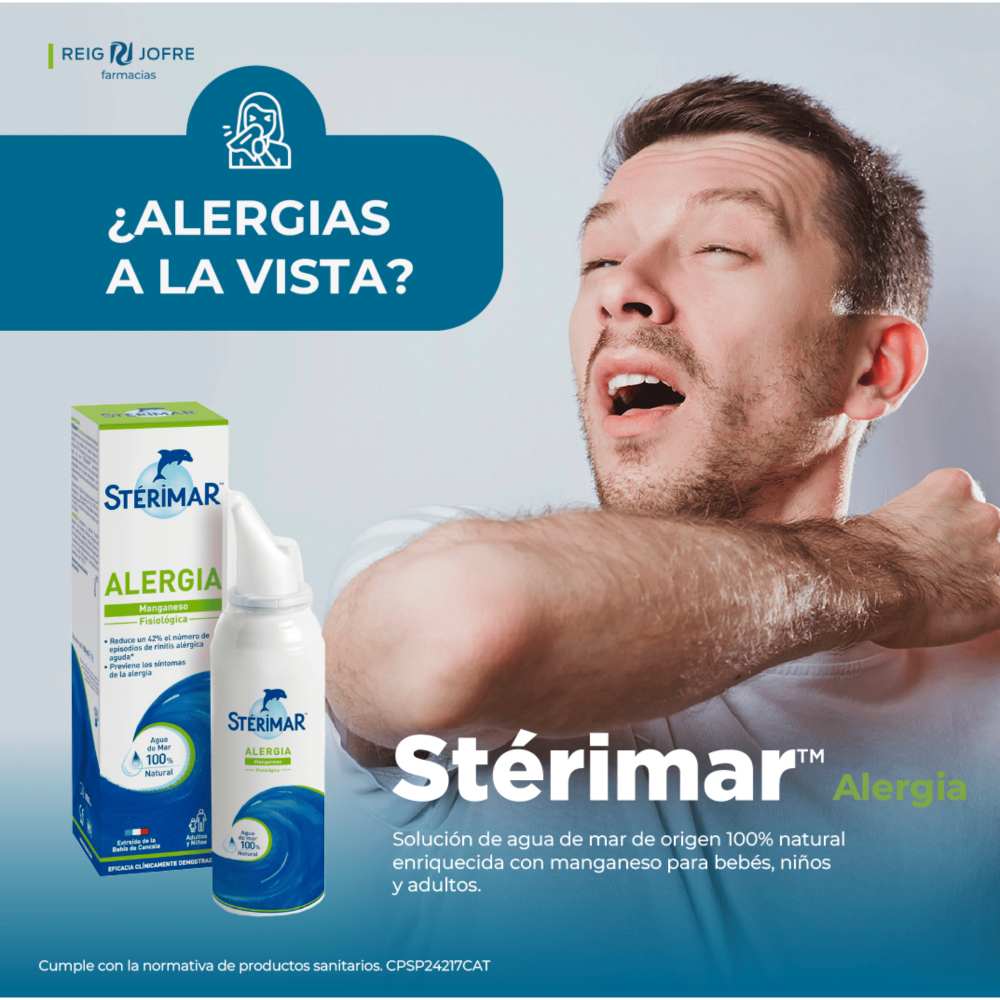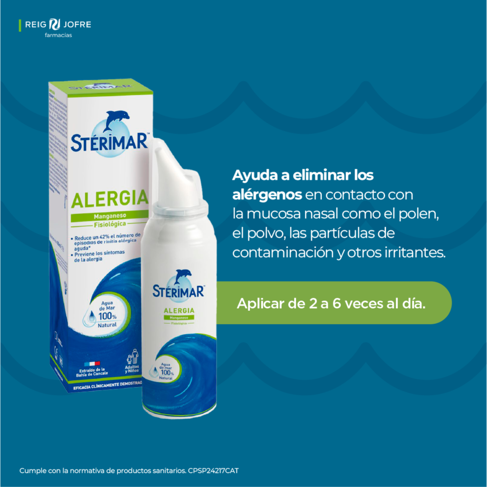 La presentación Sterimar® Mn está enriquecida en manganeso, oligoelemento que por sus propiedades antialérgicas está indicado como ayuda en el tratamiento de la rinitis alérgica (muy recomendable para aliviar los síntomas en pacientes que no pueden tomar medicación, como embarazadas, y como coadyuvante de otros tratamientos).