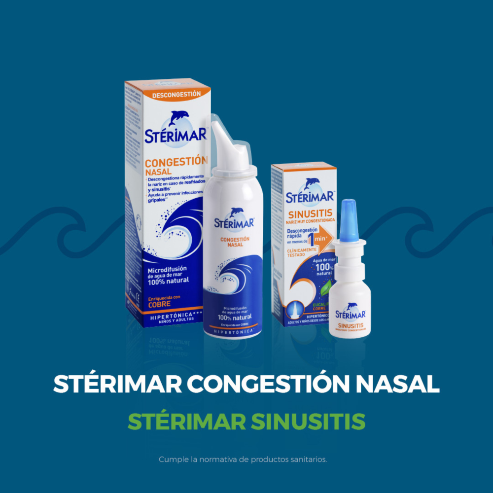 Higiene nasal Sterimar Spray Higiene y Bienestar 100ml Sterimar 376582 11,95 € Sterimar está indicado para la higiene diaria nasal en niños mayores de 3 años y adultos. Hidrata las fosas nasales y favorece la respiración. Añadir a la cesta Puntos Trébol: 1.1