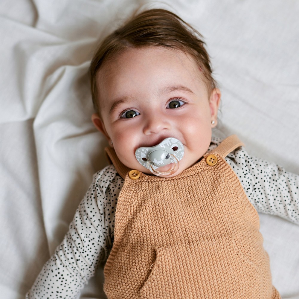 Chupete Suavinex Tetina Silicona Fisiológica pensada para no invadir la cavidad oral y proporcionar al bebé la misma sensación que experimenta en su estado natural y fisiológico cuando no lleva chupete. Respeta el desarrollo bucodental del bebé.