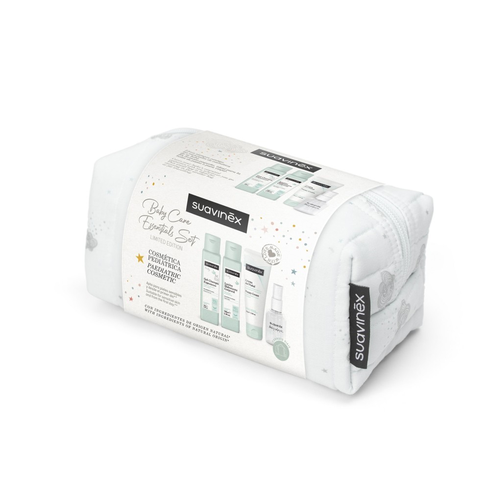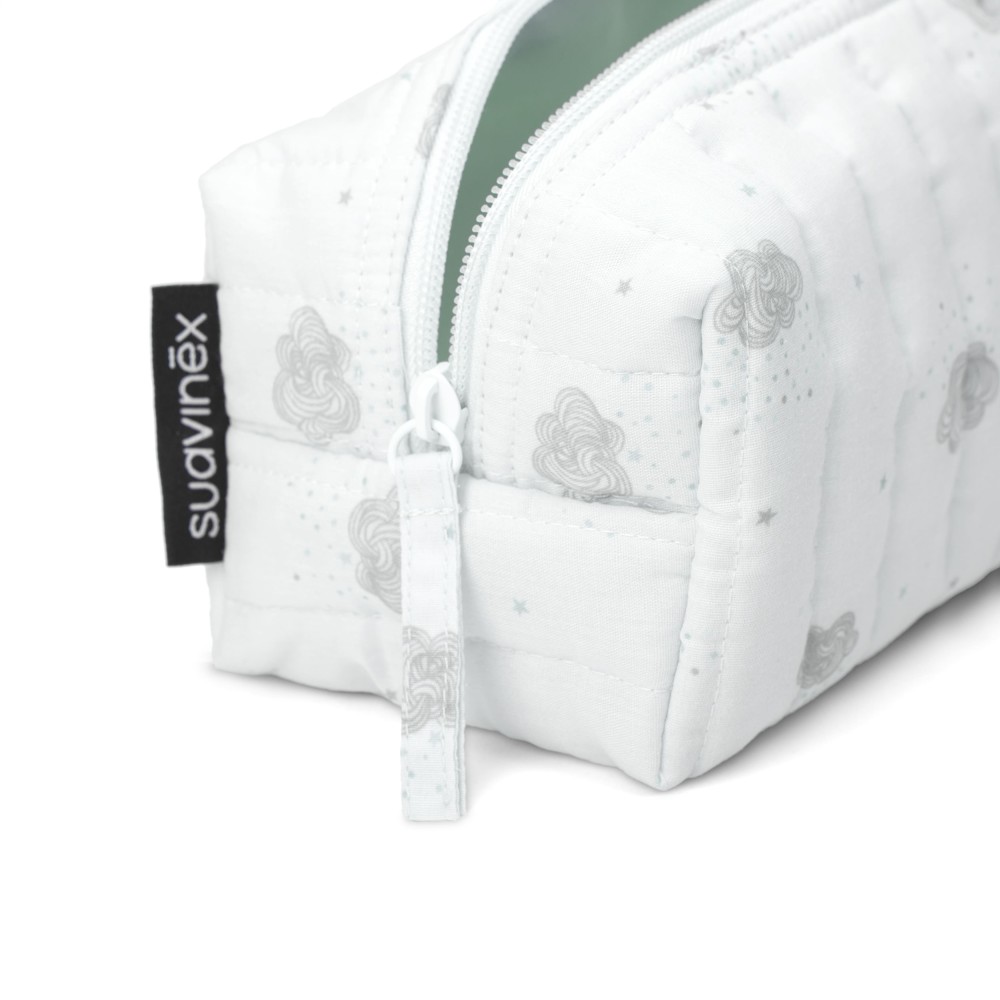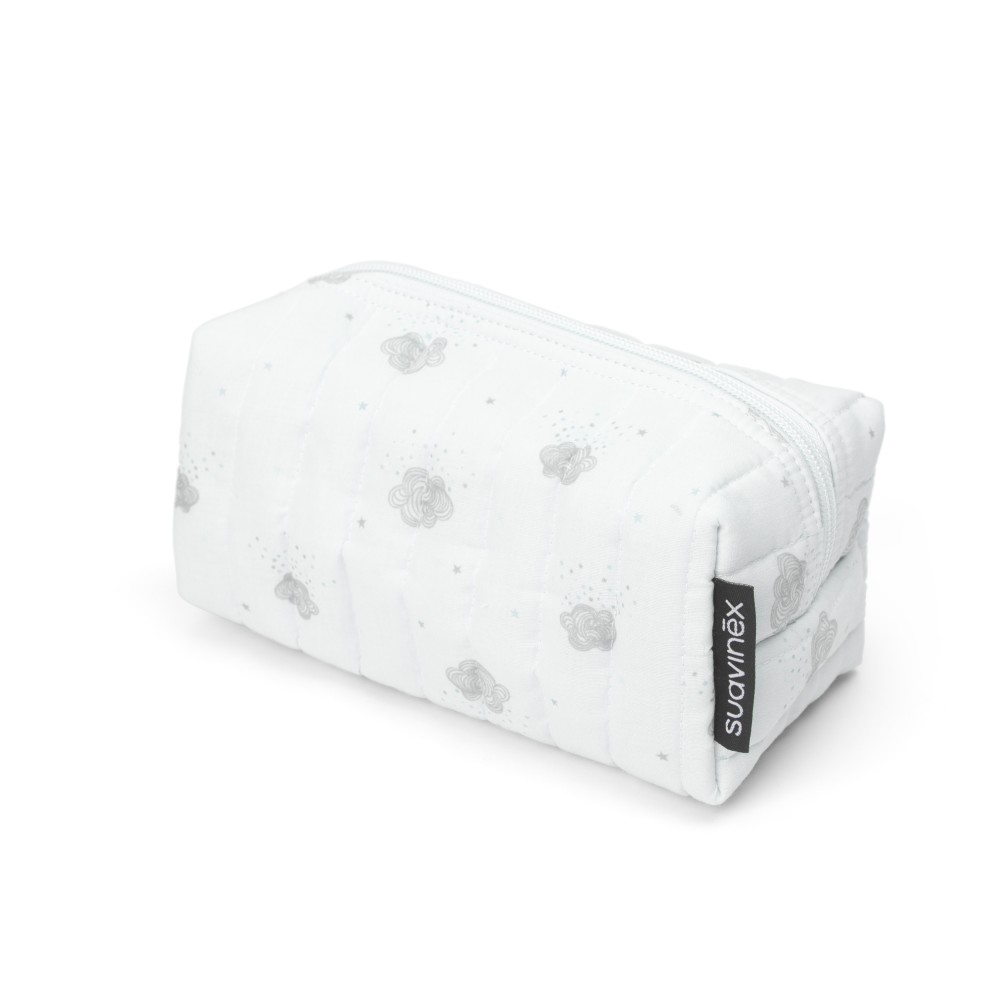 Precioso neceser de tela en formato viaje para bebé recién nacido de Suavinex. Reúne todos los productos imprescindibles para el cuidado de tu bebé.
