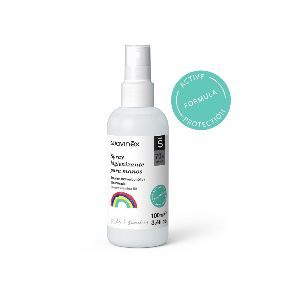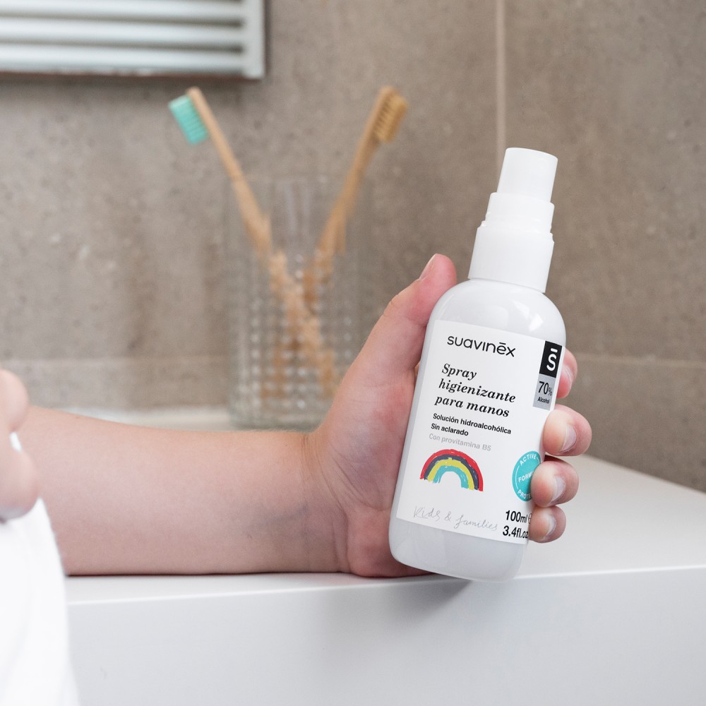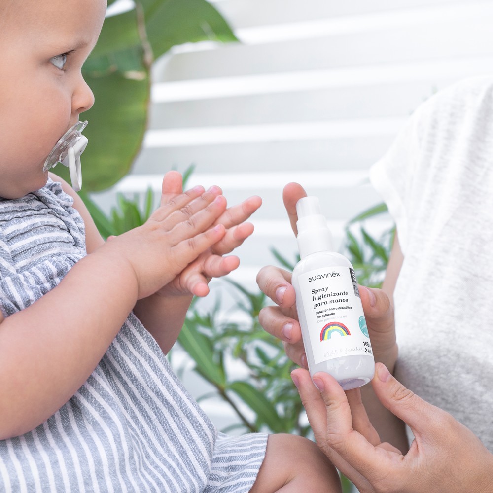 Spray higienizante para manos Suavinex, una gran ayuda para los padres en su día a día, gracias a su versatilidad de uso.