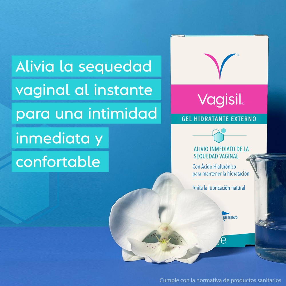 Gel Hidratante Íntimo Externo de Vagisil restaura la hidratación íntima, alivia y reequilibra de inmediato la sequedad vaginal imitando la lubricación natural.