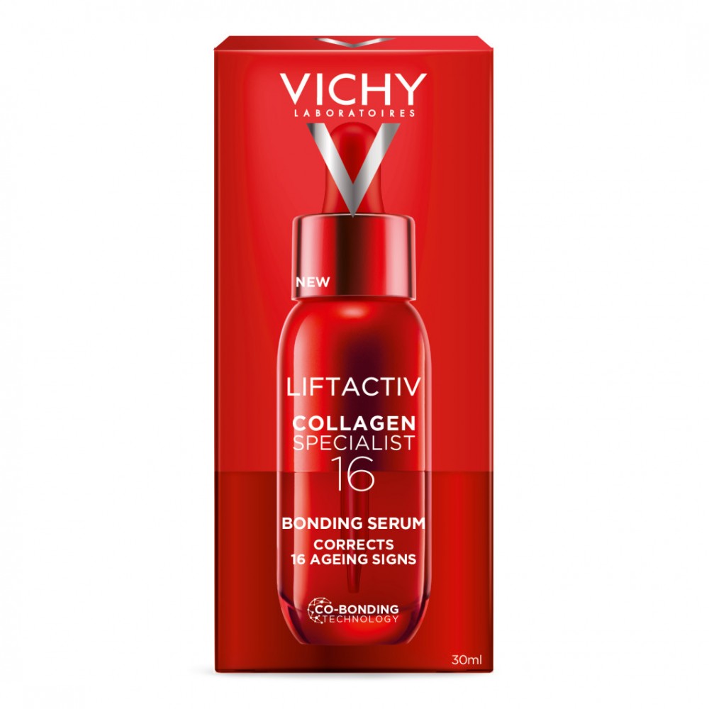 Liftactiv Collagen Specialist 16 Bonding Serum es el primer sérum de los Laboratorios Vichy con tecnología Co-Bonding, que potencia el colágeno y ayuda a corregir 16 signos de envejecimiento, tales como: arrugas, líneas finas, firmeza, flexibilidad, contorno, suavidad, textura, tonicidad, densidad, resistencia, reparación, luminosidad, piel tersa, elasticidad, hidratación, uniformidad.