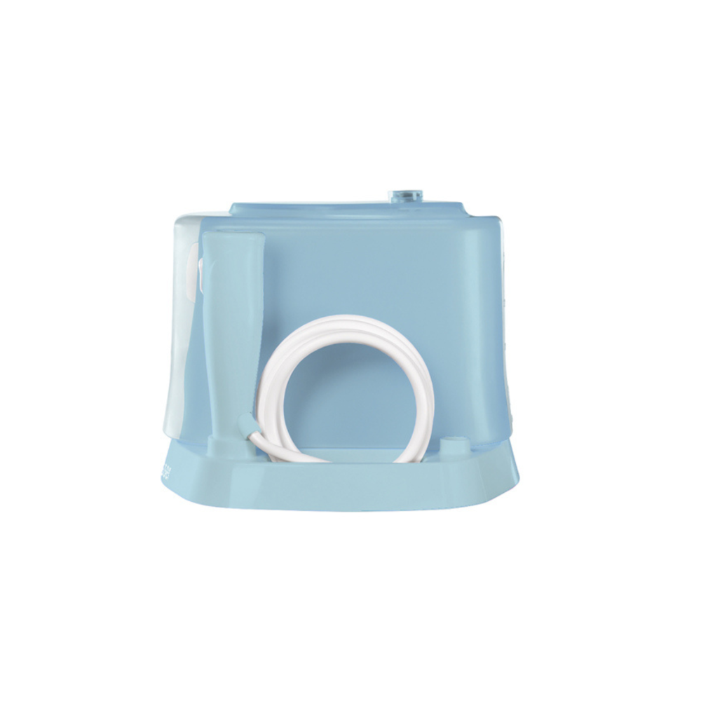 El depósito tiene una capacidad de 400 ml, que permite la irrigación bucal durante 60 segundos, e incorpora un sistema de control de presión con tres posiciones.