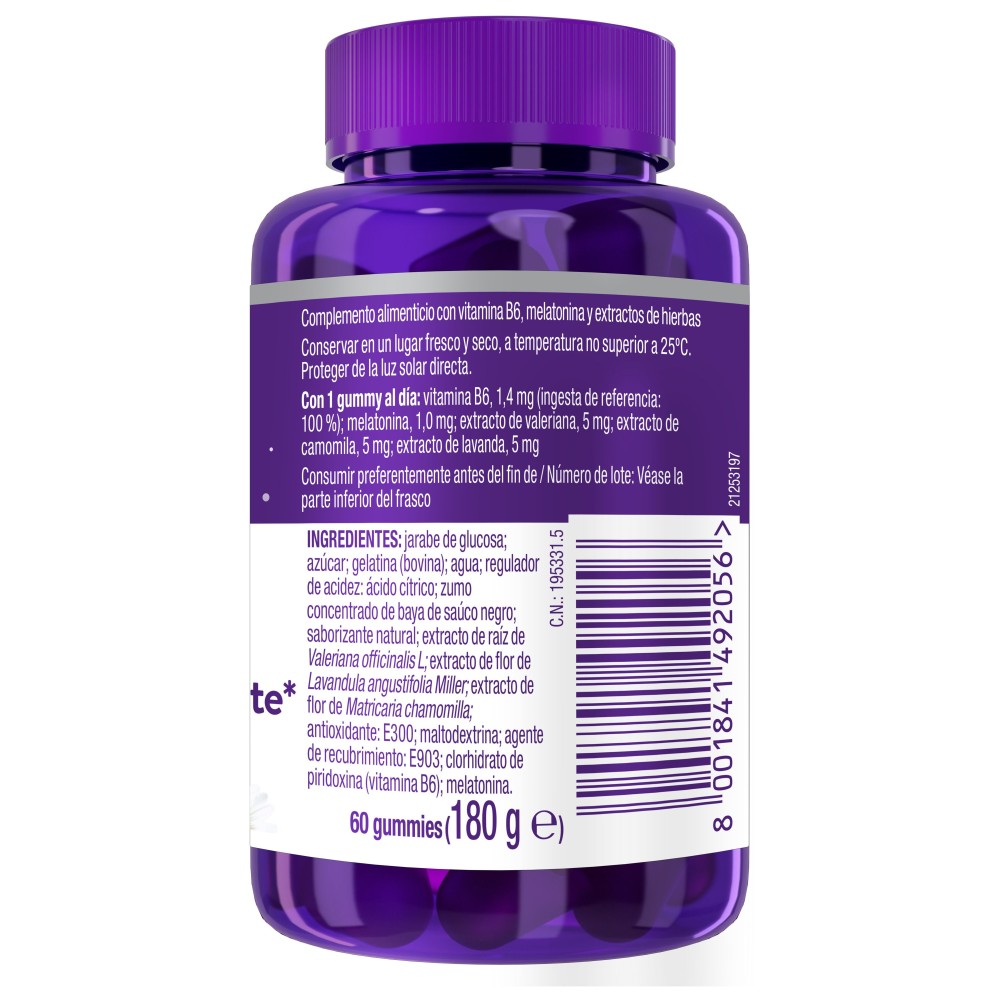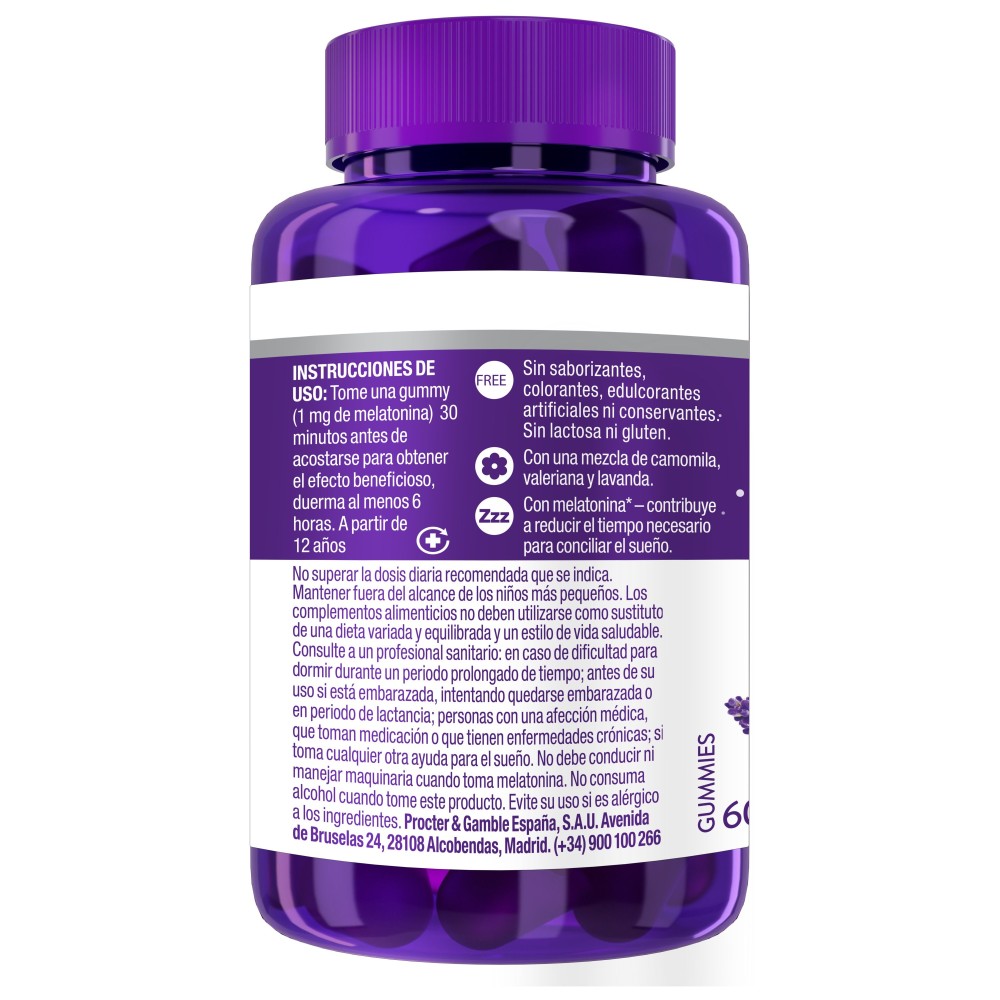 Suplemento alimenticio en forma de gominolas que ayuda a dormir rápidamente. Envase de 60 unidades.